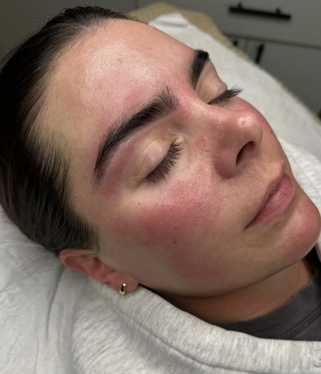 Next up dermaplaning to take off vellus hair, followed by a 5 minute antibacterial prime peel and finished off with a packed hydrating sheet mask all while you relax under the LED light.
